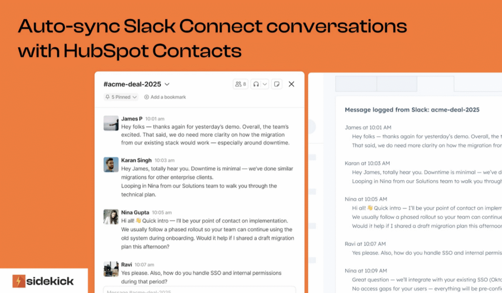 If you have any questions or need any support logging Slack conversations to HubSpot, connect with our team at contact@trysidekick.com or book a call with us here.